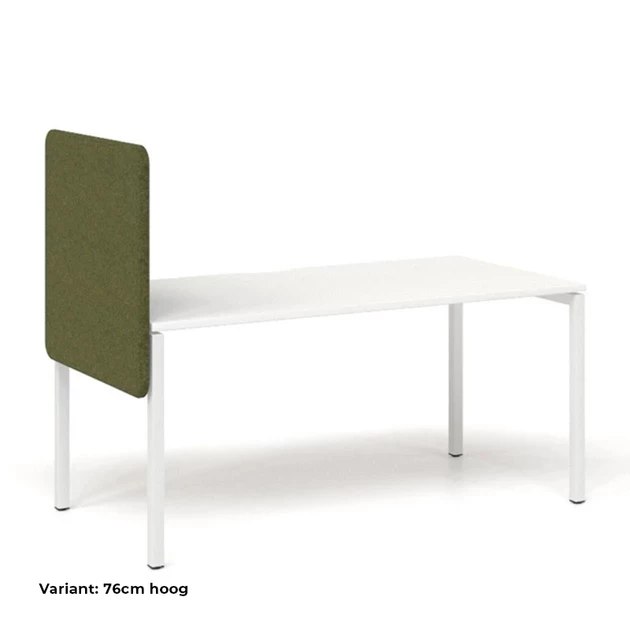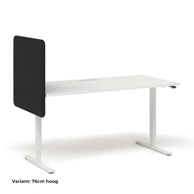 Deze is een akoestisch zijpaneel voor bureaus van 80cm diep. Het paneel is volledig gestoffeerd en van binnen gevuld met akoestisch schuim. Zo vermindert u niet alleen de galm binnen uw ruimte, maar creëert u ook een afgezonderde werkplek waar u of uw werknemers in rust kunnen werken. Is uw bureaublad dunner dan 2cm? Neem dan contact met ons op! Houd rekening met ruimte voor de montagebeugels onder uw bureaublad, zie voorbeeld.