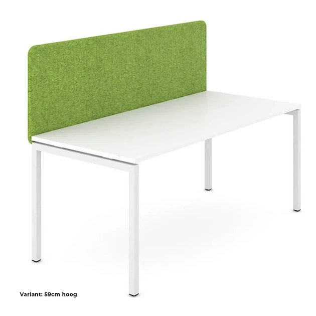 Deze akoestische bureauscheidingswand van 140cm breed is een akoestische scheidingswand voor op uw 140cm brede bureau en brengt direct verandering in de akoestiek van uw werkruimte. En niet alleen verbetert deze scheidingswand de akoestiek, ook zorgt de scheidingswand voor rust en privacy op uw werkplek. De scheidingswand is eenvoudig onder uw bureaublad vast te schroeven door de bijgeleverde metalen beugels. Is uw bureaublad dunner dan 2cm? Neem dan contact met ons op! Houd rekening met ruimte voor de montagebeugels onder uw bureaublad, zie voorbeeld.