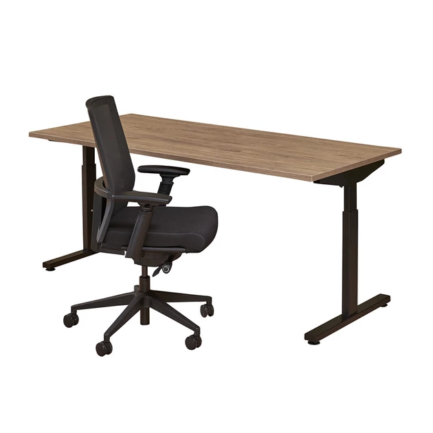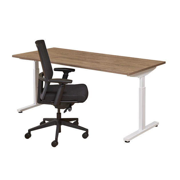 Het onderstel is hoogte verstelbaar van 62 tot 85 cm, waardoor je het bureau kunt afstemmen op een prettige werkhoogte. Het werkblad is uitgevoerd in 25 mm melamine en afgewerkt met een 2 mm dikke PVC stootrand, wat zorgt voor een nette en duurzame afwerking.