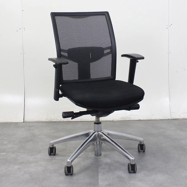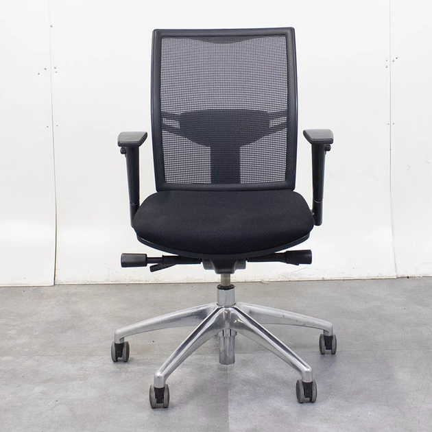 Deze gebruikte bureaustoel is ideaal voor intensief gebruik op kantoor of thuis. De netbespannen rug zorgt voor optimale ventilatie, terwijl de gestoffeerde zitting extra comfort biedt. Dankzij de verstelbare zitdiepte, zithoogte en 4D armleggers stel je de stoel volledig naar wens af. De rugleuning is in meerdere standen vast te zetten en voorzien van gewichtsregeling. Met zijn zwarte design en aluminium kruisvoet past deze stoel in elke moderne werkruimte.
