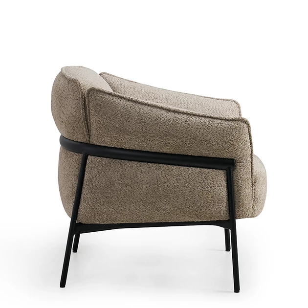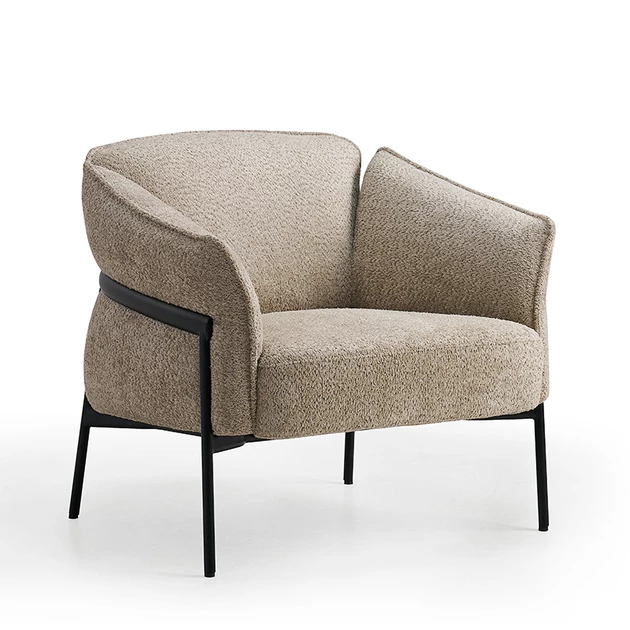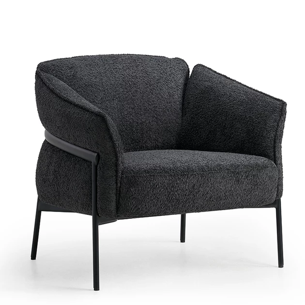 Met deze fauteuil creëer je in één keer een fijne plek om te zitten en bij te praten. De armleuningen en zachte vulling maken ’m comfortabel voor langere gesprekken. De teddy stof geeft warmte en uitstraling, zonder te schreeuwerig te zijn. Het zwart gelakte stalen frame houdt het ontwerp licht en strak. Kies uit zwart, beige of grijs en laat ’m matchen met jouw interieur. Perfect voor een loungehoek, wachtruimte of directiekamer.