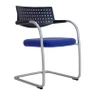 Gebruikte blauwe conferentiestoel - Fabrikant: Vitra - Type: Visavis - Kunststof rug, geperforeerd - Gestoffeerde zitting - Vaste armleggers - Sledeframe onderstel Kleuren- Kleur rug: zwart - Kleur zitting: blauw - Kleur onderstel: grijs Afmetingen- Zithoogte: 44cm - Hoogte armleuning: 66cmProductspecificaties