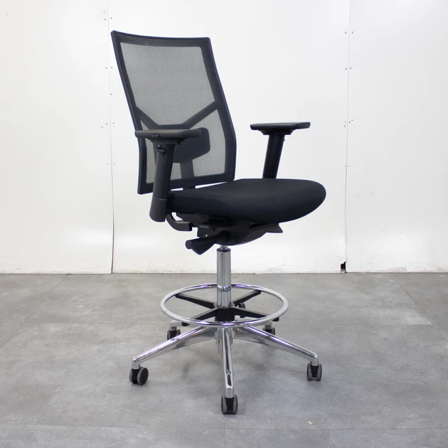Deze hoge werkstoel is speciaal ontwikkeld voor werkplekken waar een verhoogde zithouding gewenst is, zoals aan hoge bureaus, balies of industriële werktafels. De combinatie van een netbespannen rugleuning en een comfortabele zitting zorgt voor optimale ondersteuning tijdens intensief dagelijks gebruik.