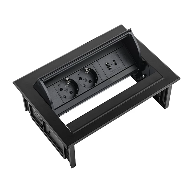De Power Desk In is een compacte inbouwmodule die met een push to open deksel en een vaste kabel van 1 meter met eGST male stekker directe stroom en laadmogelijkheden aan uw werkplek toevoegt. Kies voor de uitvoering met drie stroomaansluitingen voor eenvoudige voeding van meerdere apparatuur tegelijk of voor de uitvoering met drie stroomaansluitingen aangevuld met een USB A en een USB C lader voor snel laden van zowel oudere als nieuwe mobiele apparaten. De stevige stalen omhuizing en de keuze uit wit zwart of RVS finish zorgen voor een professionele uitstraling en langdurige inzetbaarheid in elke vergaderruimte, werkplek of kantine.