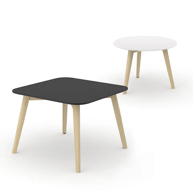 De koffietafel met HPL blad uit de Nova Wood serie is leverbaar met een rond of vierkant blad. De witte bladen zijn uitgevoerd in normaal HPL en de grijze en zwarte in het speciale Fenix HPL. Fenix HPL heeft de volgende eigenschappen: een extreem mat oppervlak dat zacht aanvoelt, biedt bescherming tegen hand- en vingerafdrukken en een thermisch herstel van kleine krassen.