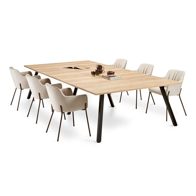 De TMeeting 4 combineert elegantie en stabiliteit in één ontwerp. Dankzij de schuin geplaatste TM4 poten, vervaardigd uit een robuust 5x5 cm buisframe en een stevige montagebasis, biedt deze tafel optimale stevigheid en een moderne uitstraling. Deze variant is perfect geschikt als vergader- of kantinetafel. Met zijn strakke design en eindeloze combinatiemogelijkheden past de TMeeting 4 moeiteloos in elke professionele omgeving. Stel de tafel volledig naar wens samen en creëer de perfecte werk- of ontmoetingsplek.