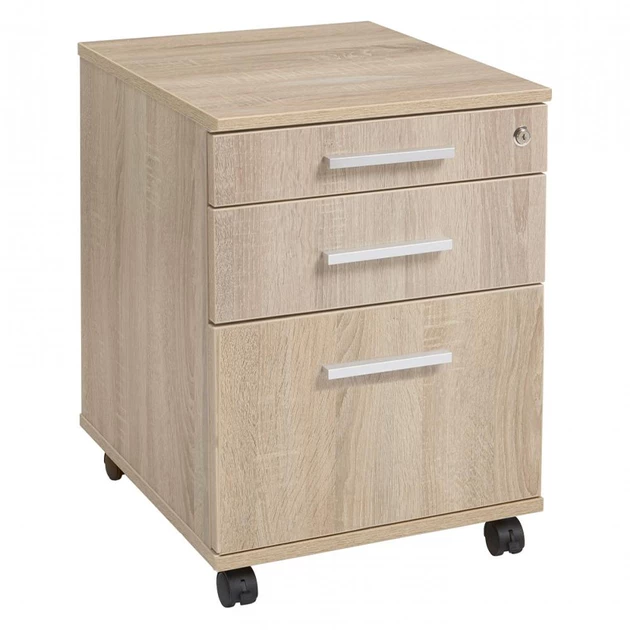 Dit ladeblok op wielen is een praktische en nette oplossing voor op kantoor. Het ladeblok is voorzien van vier lades waarvan één pennenlade, deze is standaard ingedeeld met een handig pennenbakje. Het ladeblok is gemaakt van stevig melamine en verkrijgbaar in de kleuren Dark Oak of Medium Oak, deze kleuren in combinatie met de stevige aliminium handgrepen geven het ladeblok een strakke en degelijke uitstraling. Met een hoogte van 58 cm past het gemakkelijk onder je bureau en is het eenvoudig te verplaatsen door de vier wielen. Dankzij het slot, wat standaard wordt geleverd met twee sleutels, berg je je spullen ook nog eens veilig op!