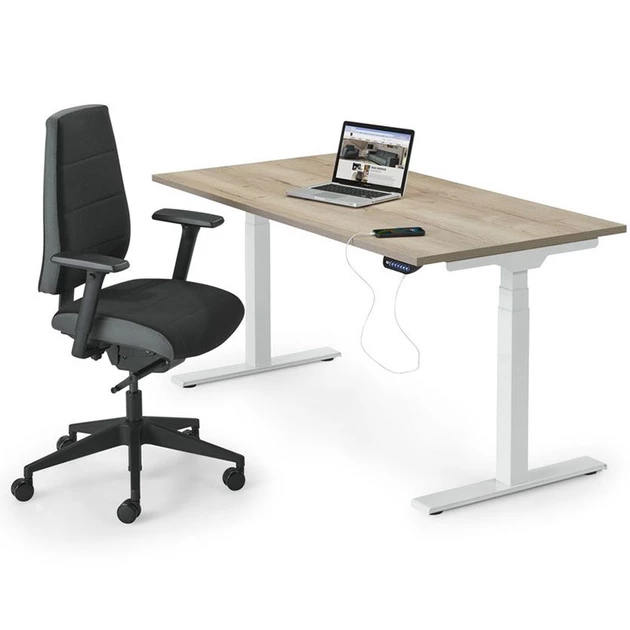 De S-Line is de nieuwe generatie elektrisch verstelbare zit-sta bureau, ontworpen voor optimaal comfort en gebruiksgemak. Het bureau is verkrijgbaar met een stabiele T-poot en past daarmee in iedere moderne werkomgeving. Dankzij de elektrisch verstelbare 3-delige kolompoten wissel je moeiteloos van zithoogte naar stahoogte, variërend van 65 tot 130 centimeter. Twee krachtige en fluisterstille motoren zorgen voor een soepele en stille beweging. Het bureau is uitgerust met een geheugenunit met vier standen, zodat je jouw ideale hoogtes eenvoudig kunt opslaan.