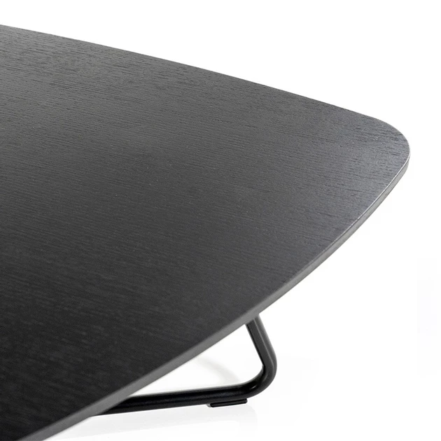 Een stijlvol, praktisch bijzettafeltje voor uw entree, lounge of wachtruimte: de Bijzettafel Carré met zwart eiken blad. De unieke vorm, samen met het glanzende, stalen 3-poots onderstel, brengen een frisse en huiselijke uitstraling mee in uw kantoor.